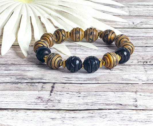 Agates & Wood Gemstone Beaded Bracelet | Men's Bracelet | Multiple Sizes