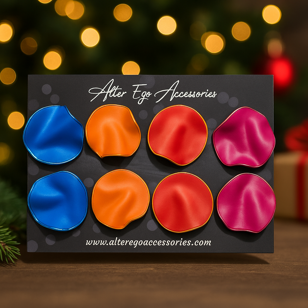 Introducing The Nina Lux Stud Collection — a vibrant, handcrafted selection of 1-inch clay stud earrings designed for those who love bold color but prefer a smaller, lightweight option. Each pair is sculpted by hand, creating soft, organic waves and a luxurious satin finish that stands out beautifully in any holiday look.